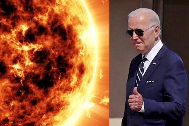 顯示太陽和總統喬拜登的股票圖像。 拜登政府在 3 月份宣布投資 5000 萬美元用於核融合聚變研究。